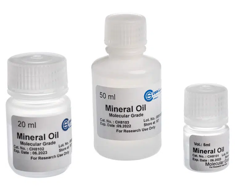 mineral oil جهت استفاده در pcr کاربرد داشته و مانع از تبخیر محصول pcr در حین انجام سیکل گرمایی pcr می گردد.