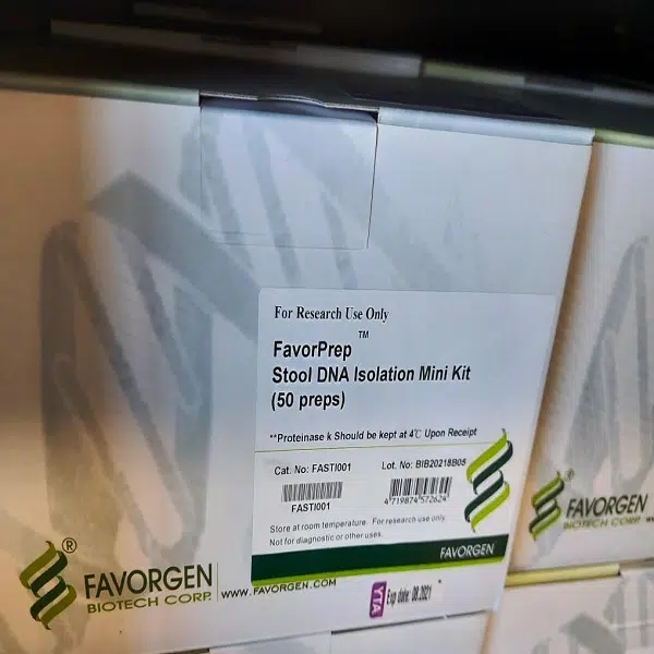 برای استخراج DNA از مدفوع با توجه به سخت بودن پروسه استخراج با کیت های عمومی ، کیت اختصاصی کمپانی Favorgen که اختصاصا فقط برای استخراج DNA از مدفوع ساخته شده است .
